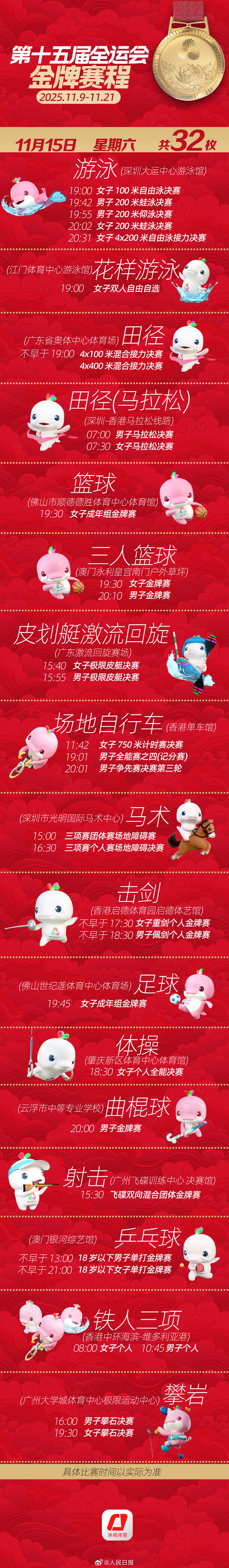 第十五届全运会开幕式将于明日举行。收藏十五运会金牌赛程,一起看全运会。